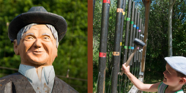 Der Erlebnisweg beginnt beim Bahnhof Giswil. Eine aus Holz geschnitzte grosse Figur markiert den Ausgangspunkt. Spezielle Wegweiser leiten Sie auf