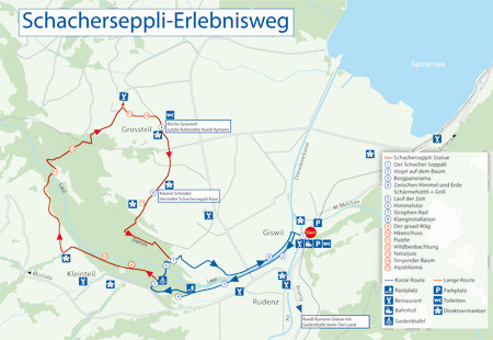 Der kürzere Weg (ca. 4 km) ist dem Lied "Der Schacherseppli" gewidmet und ist blau markiert.
